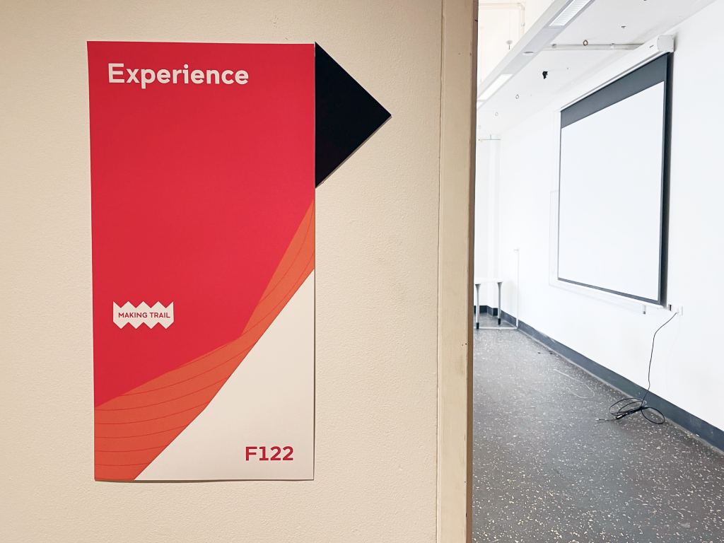 Temporary wayfinding signage displayed around campus for the 2022 UNSW Paddington Open Day.